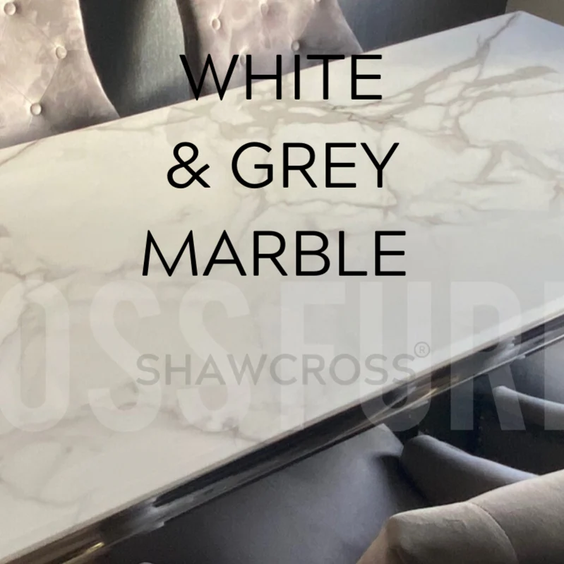 Ariana marble Dining Set With Lewis shimmer Button Back Lion Chairs