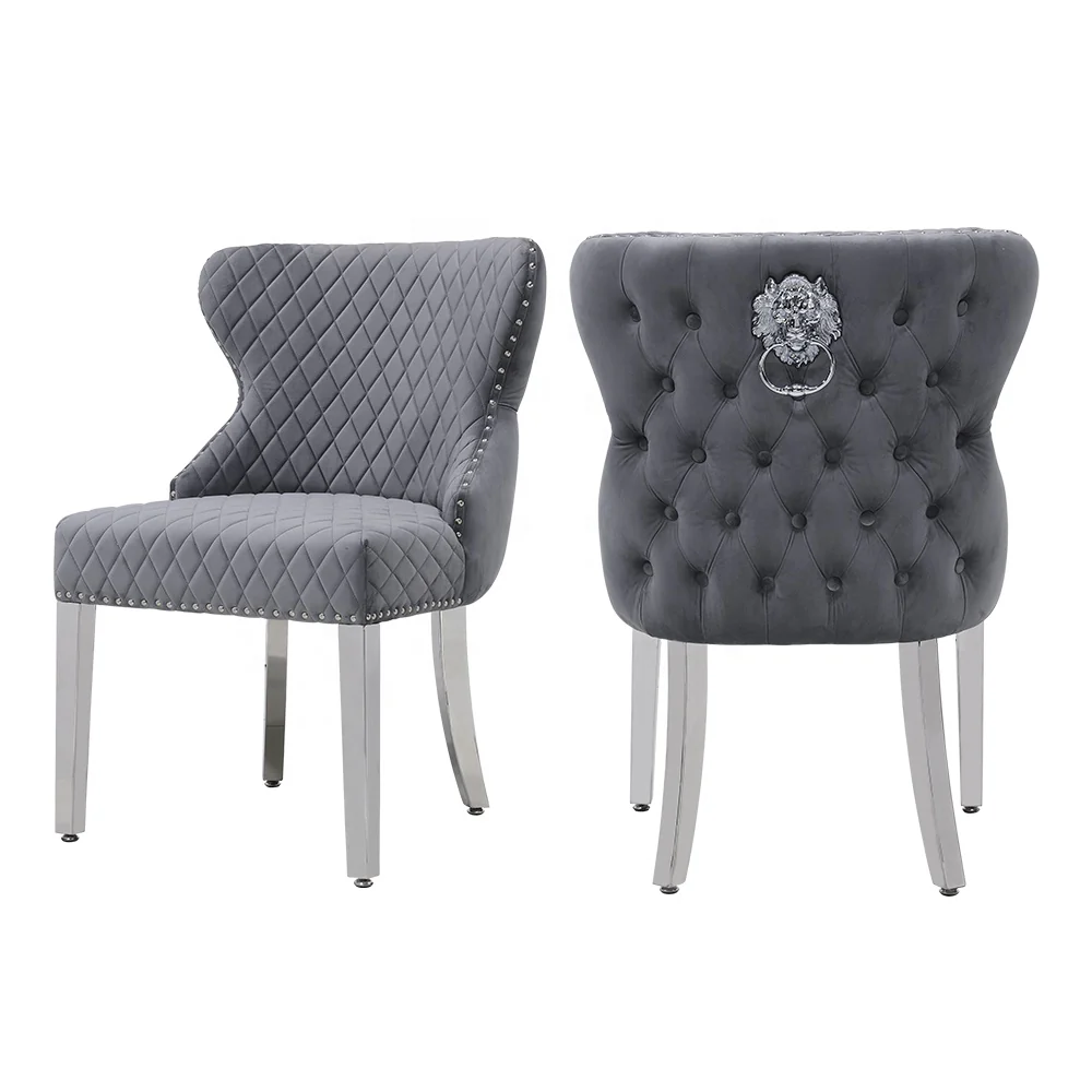 FITTED WITH A TRADITIONAL LION KNOCKER ON BACK OF EACH CHAIR