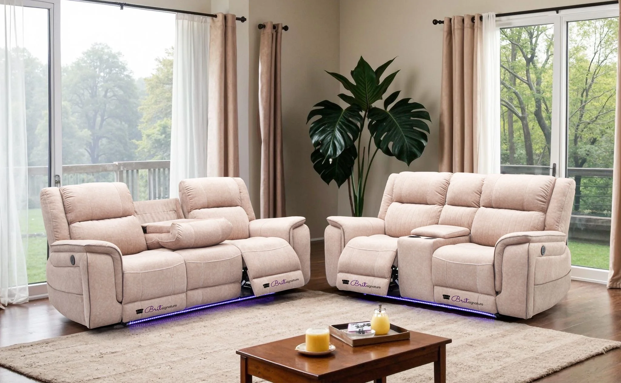 Cassa electric 3 & 2 Recliner sofa set in Beige fabric with LED Lights
