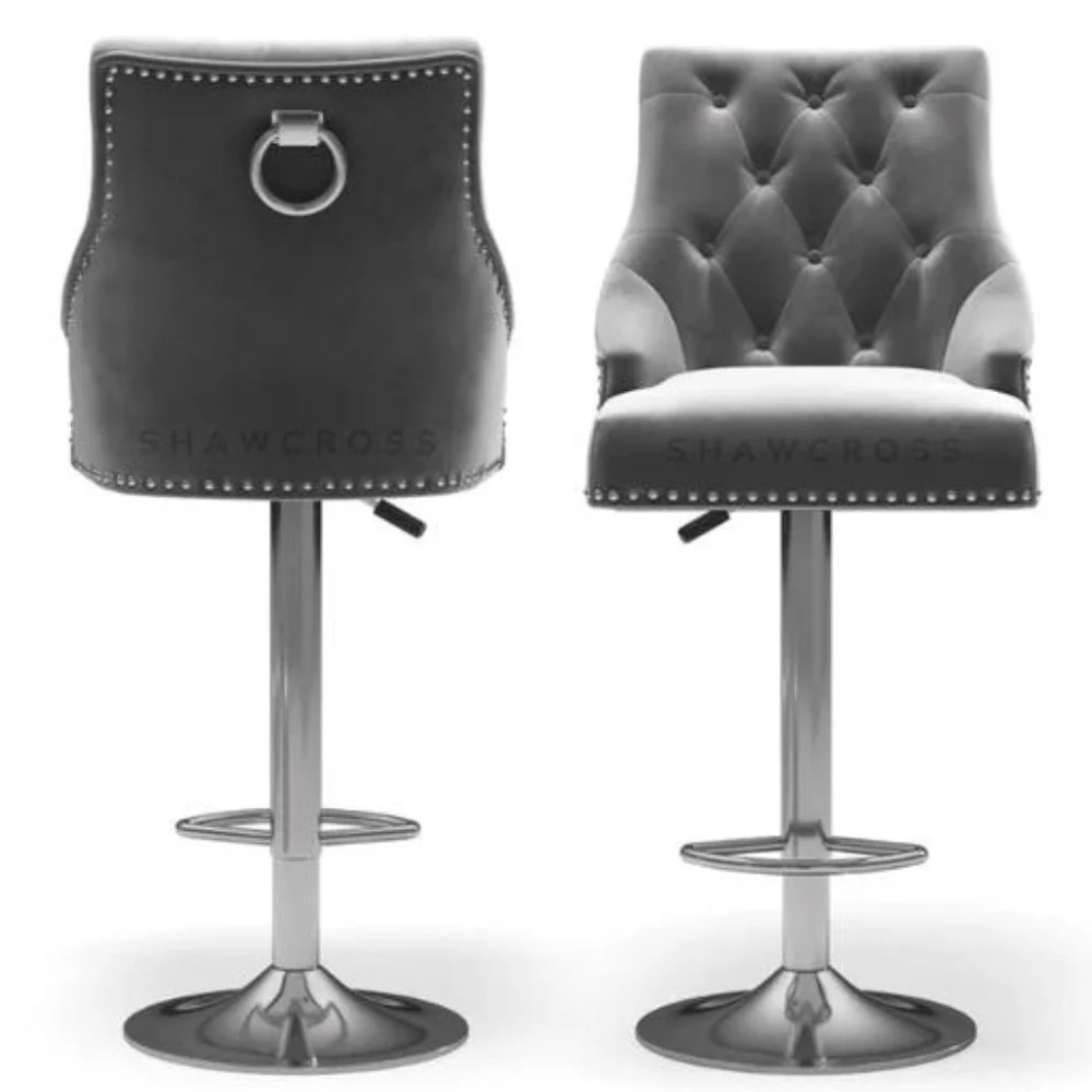 Pair of Cheshire Knocker Bar Stool In Grey Velvet