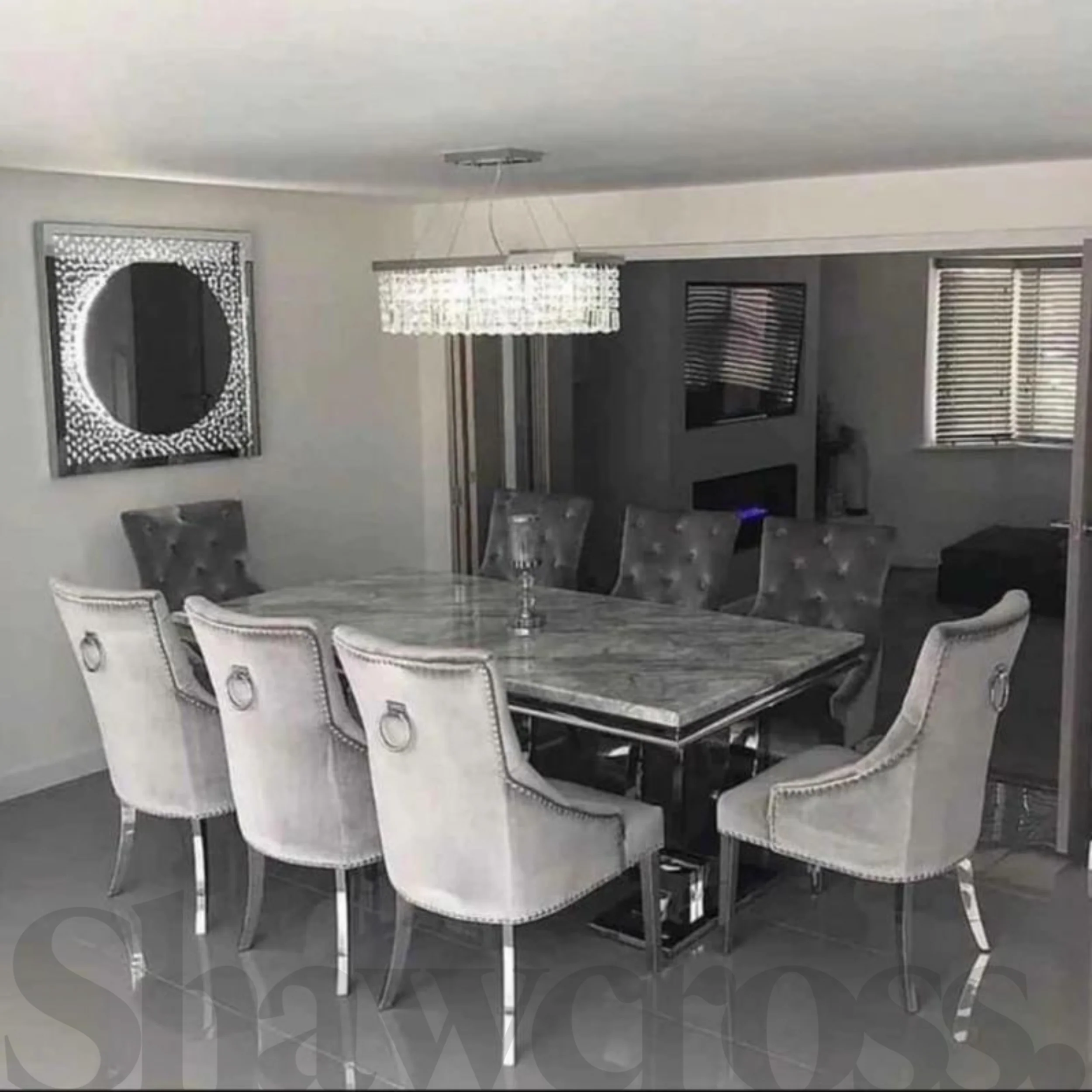 Ariana Marble 2m x 1m Dining Table With 6 Or 8 Knocker Dining Chairs