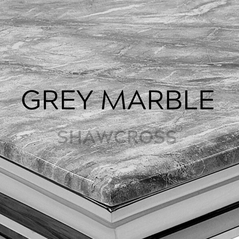 LOUIS MARBLE 1.8M OR 1.5M DINING TABLE WITH GREY VELVET LUCIA KNOCKER CHAIRS